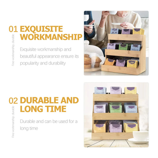 Creative Wooden Coffee and Tea Bag Holder Stand – Versatile Organizer for Kitchen, Hotel, and Jewelry Display